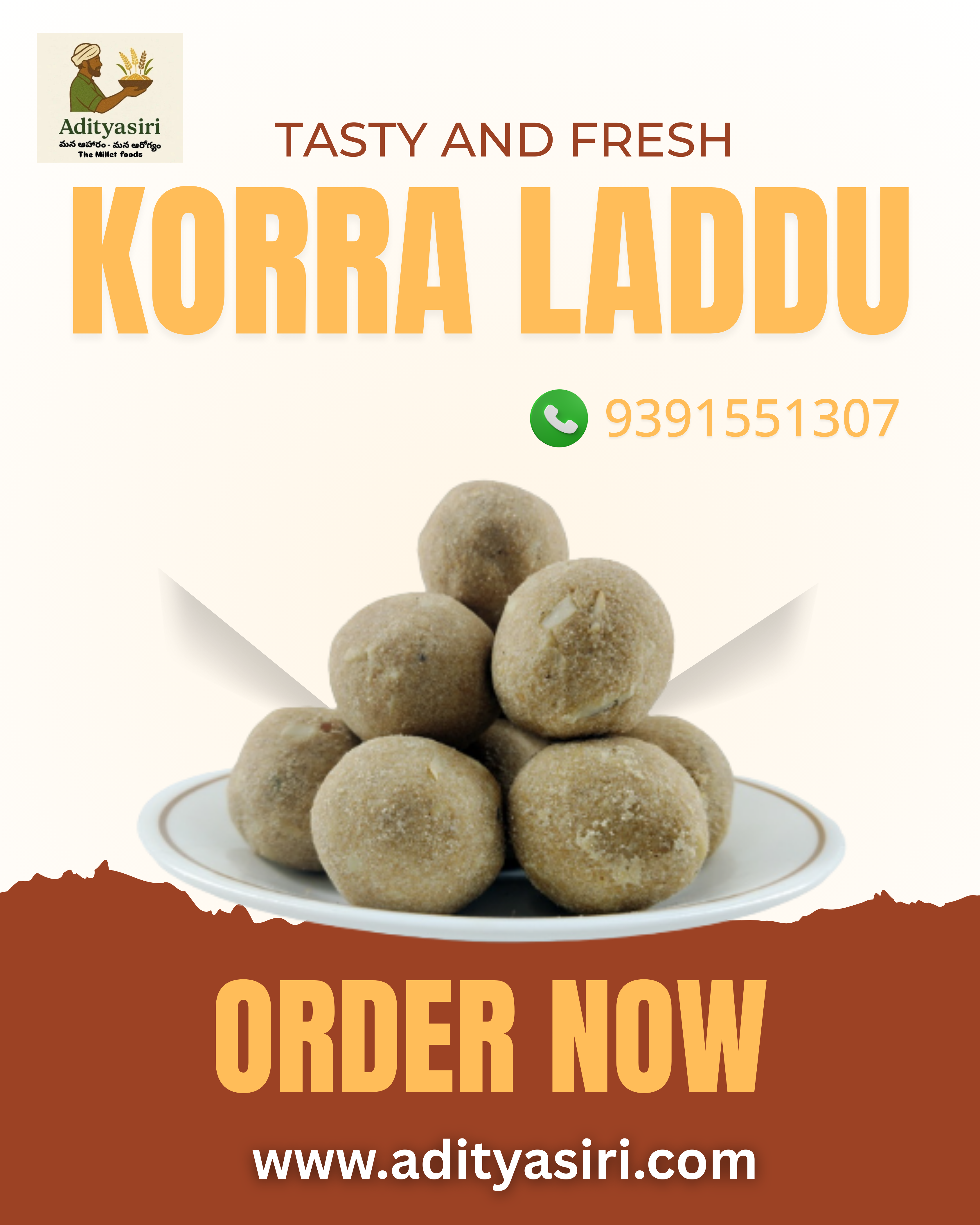 Enjoy the wholesome goodness of tradition with our Korra Laddu, made from foxtail millet (korra), natural jaggery, and pure ghee. These laddus are not just delicious but also a healthy alternative to refined sweets, packed with nutrition and taste. Boosts energy & improves digestion. 100% natural, no preservatives, no artificial flavors